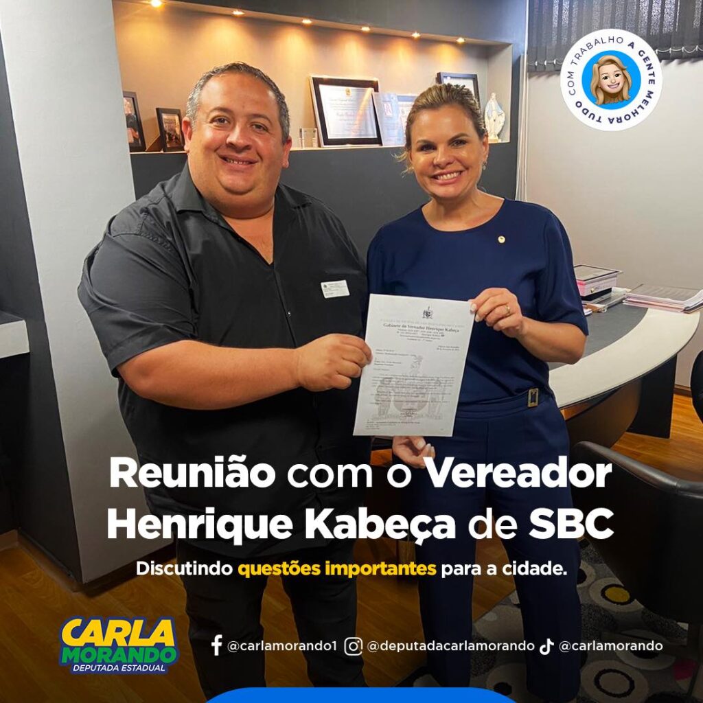 Ontem tive o enorme privilégio de realizar uma reunião junto a Deputada Estadual Carla Morando. Tratamos de diversos assuntos em prol de nossa São Bernardo do Campo.